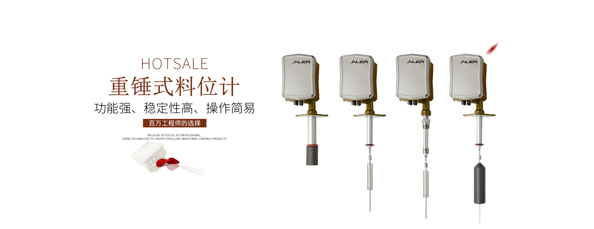 重錘式料位計由傳感器和儀表組成,傳感器采用重錘探測式,各種信號由特制的采集單元取出,無機(jī)械觸點(diǎn)、運(yùn)行可靠。傳感器放置倉頂,重錘由電機(jī)通過不銹鋼帶或鋼絲繩牽引吊入在倉內(nèi),儀表控制傳感自動定時對料位進(jìn)行探測,每次測量時重錘從倉頂起始位置開始下降,碰到料面立即返回到倉頂?shù)却乱淮螠y量。儀表通過對重錘下降過程傳感信號的處理可得到倉頂?shù)搅厦娴木嚯xhl,倉高H是由用戶預(yù)置的,這樣用倉高H減去hl便可得出料位高度h=H-hl,儀表直接顯示料位高度h。系統(tǒng)采用PLC控制,功能強(qiáng)、穩(wěn)定性高、操作簡易;特別適用于電力、冶金、